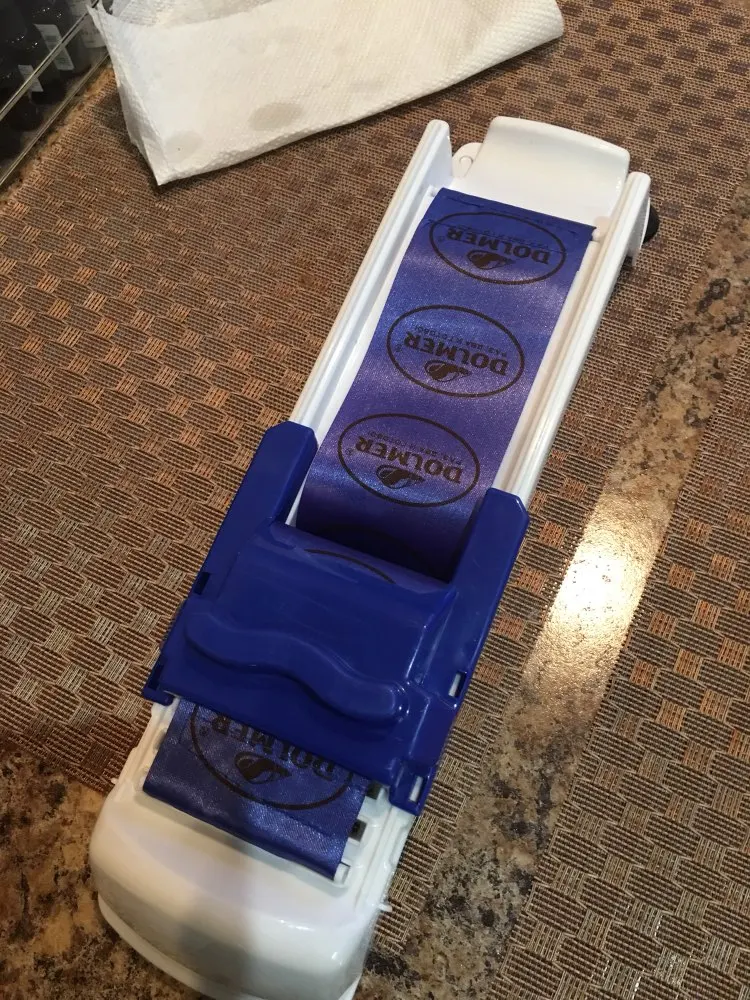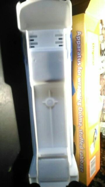 Pull the roller band into the groove and put in your grape leaf, cabbage, wonton paper, etc.