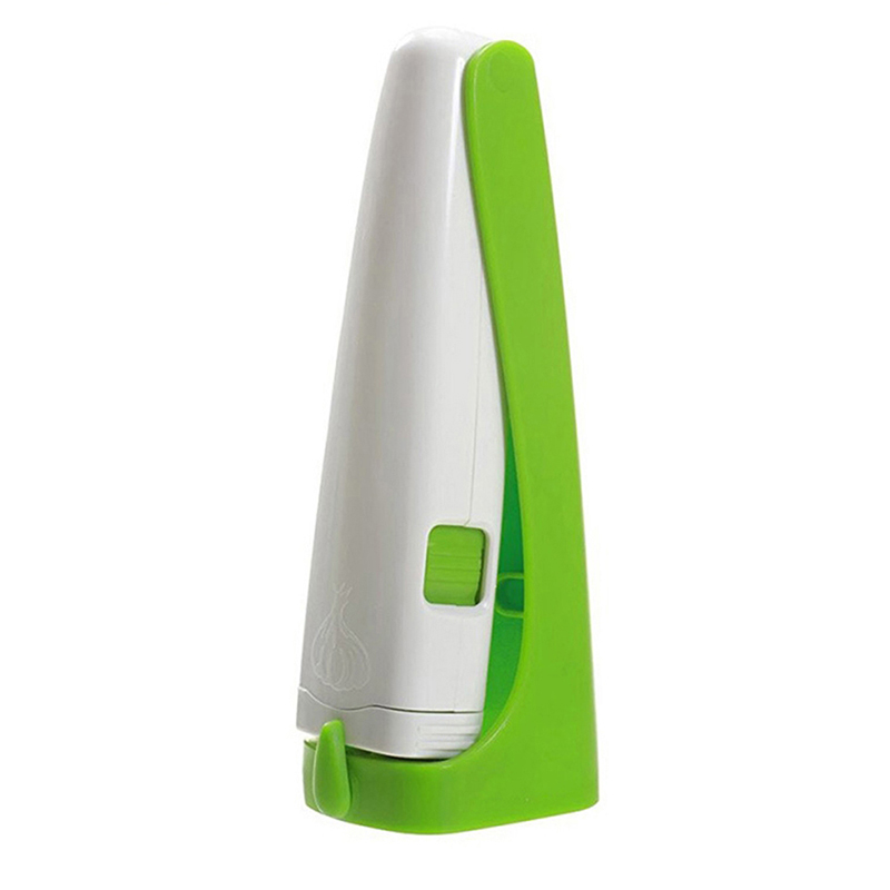 Simply add a peeled clove of garlic within, squeeze the handle and get perfectly grated garlic without leaving the smell on your hands and fingers.
